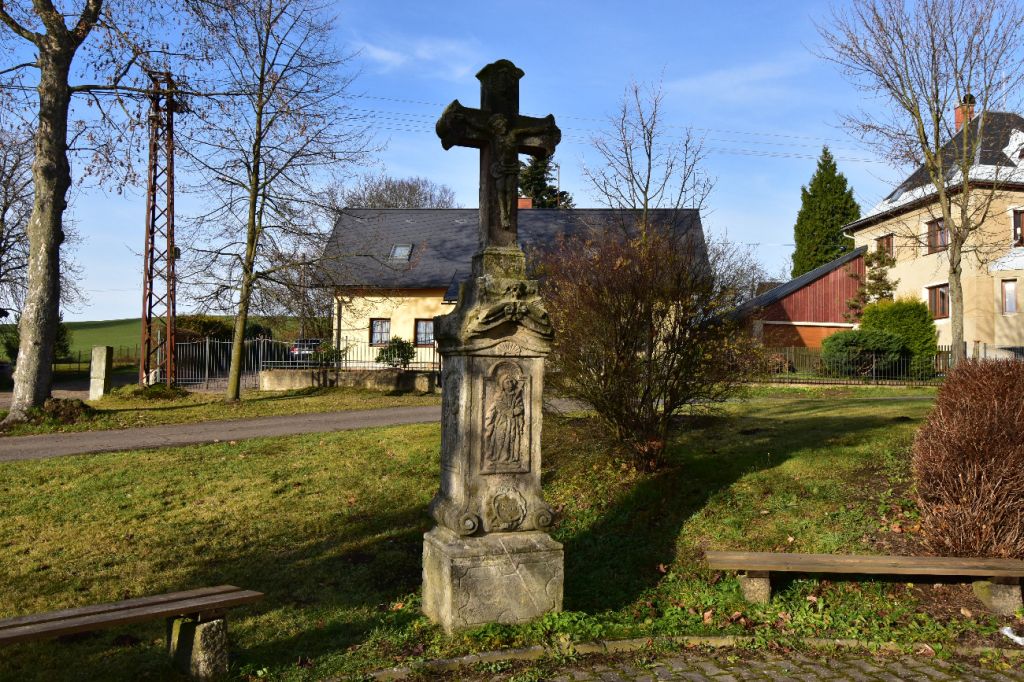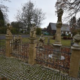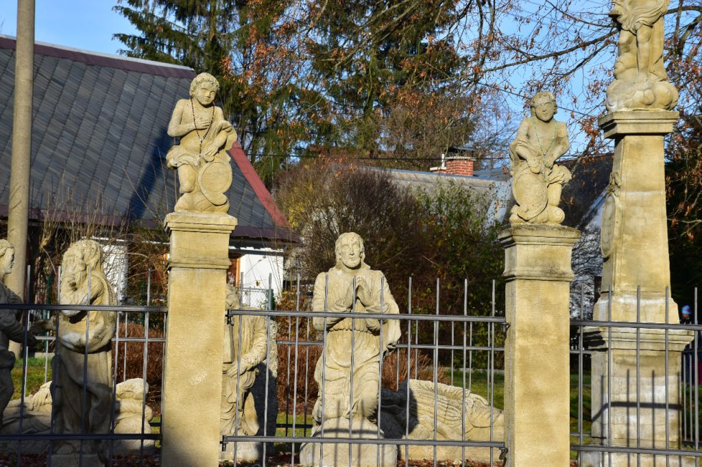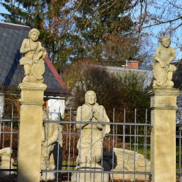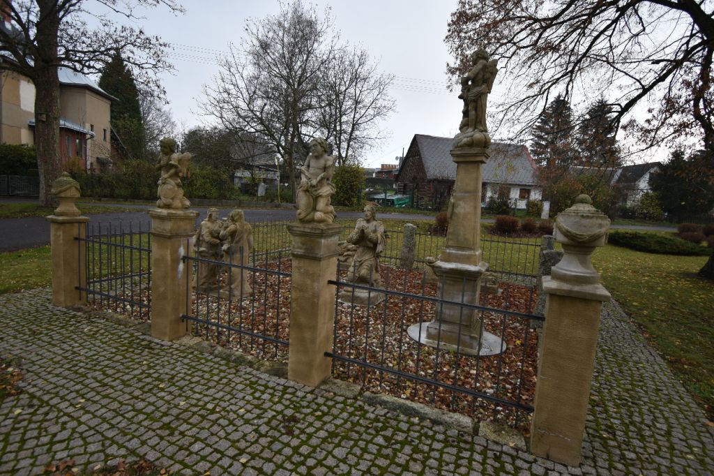 The Gethsemane Garden sculpture group from 2014 is located next to the church. The original group dates back to 1829 (The author was probably the stonemason Ignác Martinec from nearby Sestroňovice, who was inspired by a similar sculpture group built under Křížová hora in Jiřetín pod Jedlovou. Both works are thus significantly influenced by the Waltersdorf production - the sandstone quarries and the production area of the Zittau Mountains - and thus bear a significant seal of the common cultural heritage of the Euroregion.